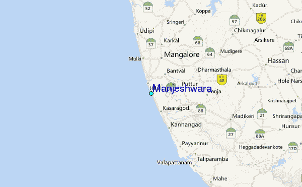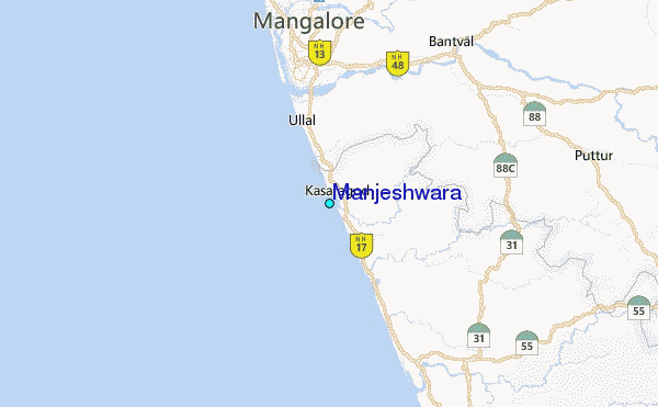 Use this relief map to navigate to tide stations, surf breaks and cities that are in the area of Manjeshwara.
