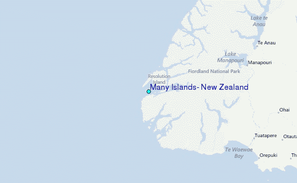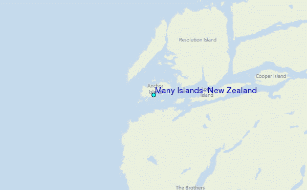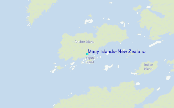 Use this relief map to navigate to tide stations, surf breaks and cities that are in the area of Many Islands, New Zealand.