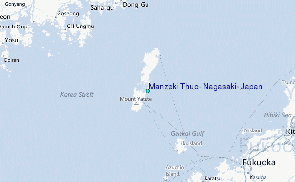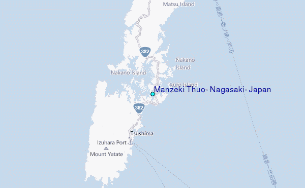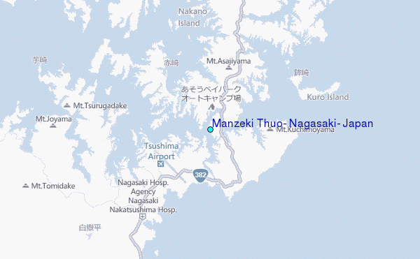 Use this relief map to navigate to tide stations, surf breaks and cities that are in the area of Manzeki Thuo, Nagasaki, Japan.