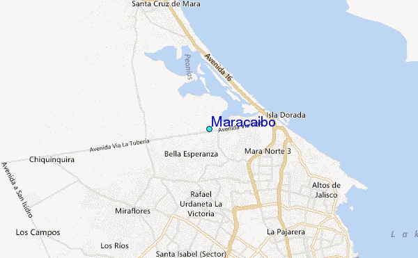 Use this relief map to navigate to tide stations, surf breaks and cities that are in the area of Maracaibo.