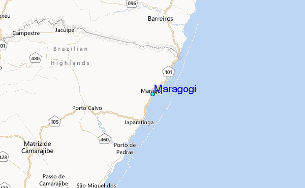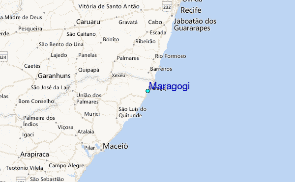 Use this relief map to navigate to tide stations, surf breaks and cities that are in the area of Maragogi.
