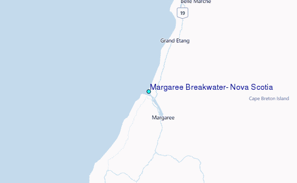 Other Nearby Locations' tide tables and tide charts to Margaree Breakwater, Nova Scotia: