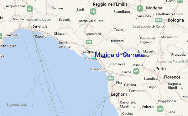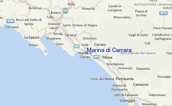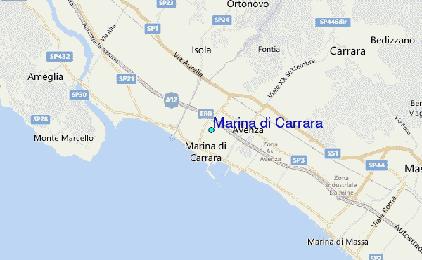 Use this relief map to navigate to tide stations, surf breaks and cities that are in the area of Marina di Carrara.