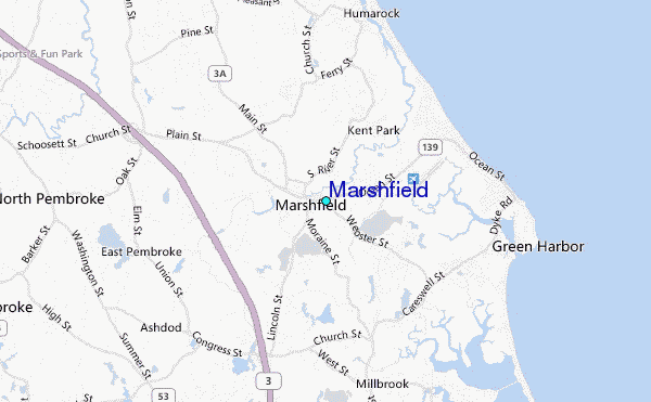 Use this relief map to navigate to tide stations, surf breaks and cities that are in the area of Marshfield.