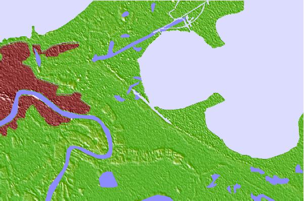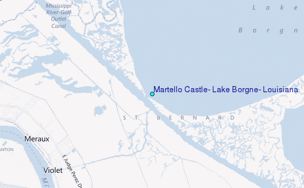 Use this relief map to navigate to tide stations, surf breaks and cities that are in the area of Martello Castle, Lake Borgne, Louisiana.