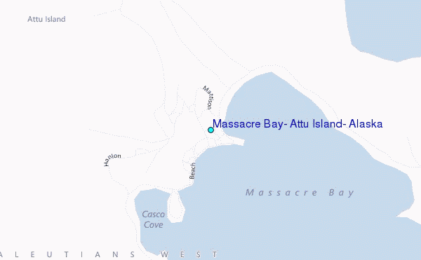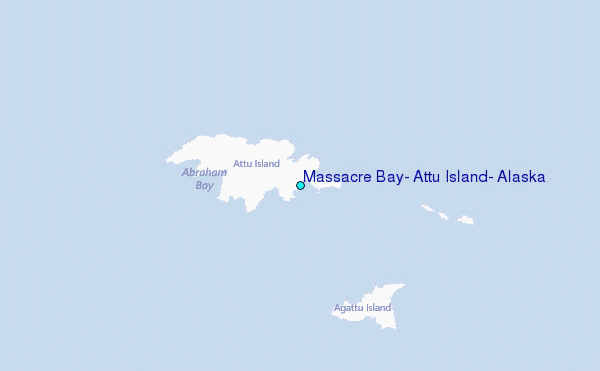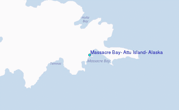 Use this relief map to navigate to tide stations, surf breaks and cities that are in the area of Massacre Bay, Attu Island, Alaska.