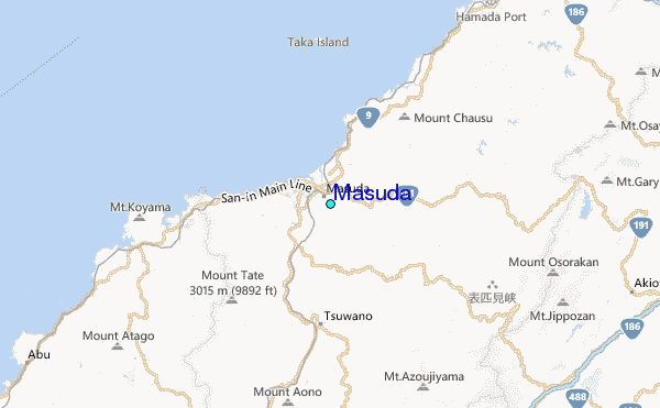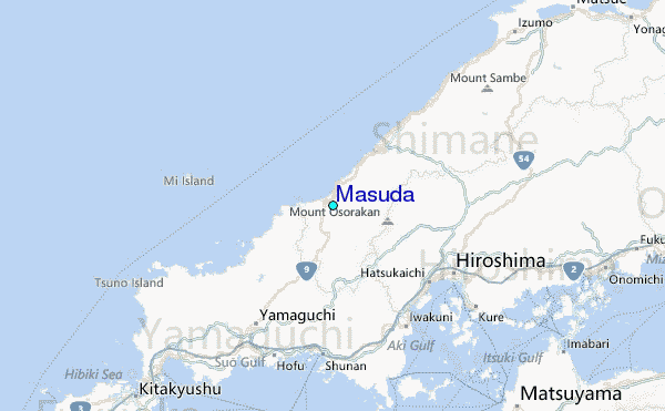 Use this relief map to navigate to tide stations, surf breaks and cities that are in the area of Masuda.