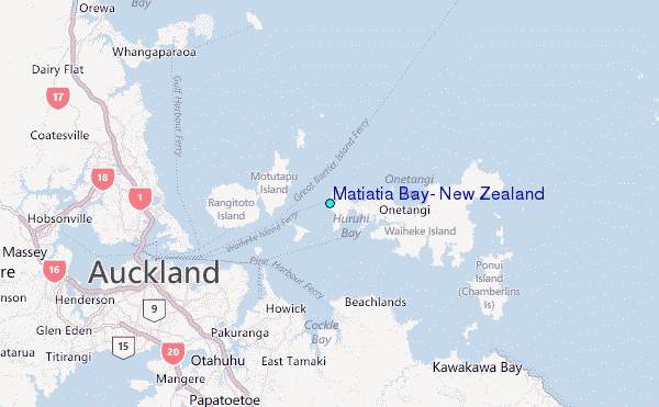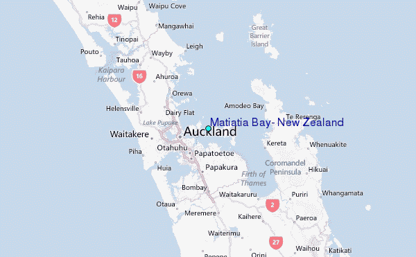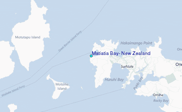 Use this relief map to navigate to tide stations, surf breaks and cities that are in the area of Matiatia Bay, New Zealand.
