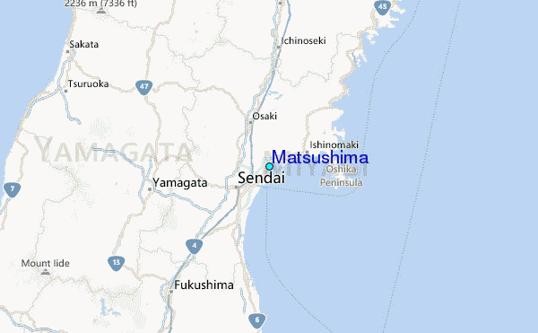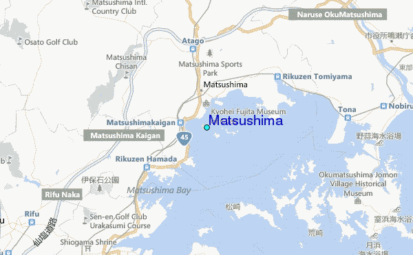 Use this relief map to navigate to tide stations, surf breaks and cities that are in the area of Matsushima.