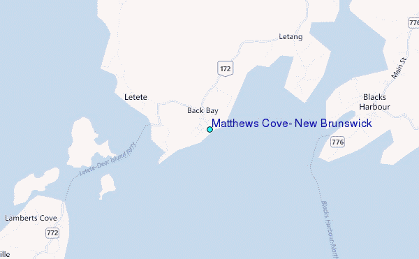 Use this relief map to navigate to tide stations, surf breaks and cities that are in the area of Matthews Cove, New Brunswick.