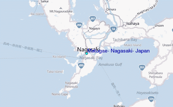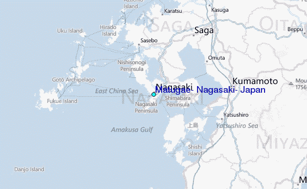 Use this relief map to navigate to tide stations, surf breaks and cities that are in the area of Matugae, Nagasaki, Japan.