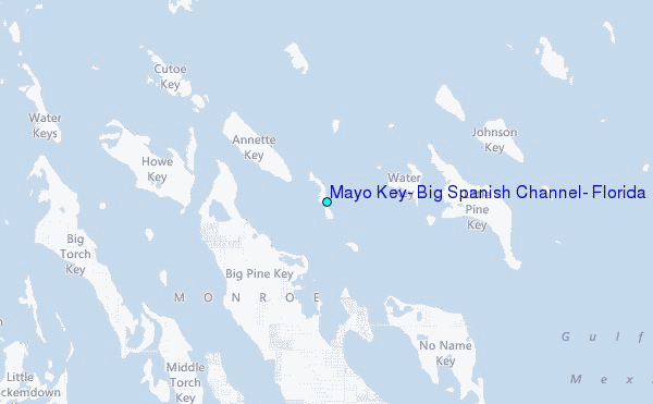 Use this relief map to navigate to tide stations, surf breaks and cities that are in the area of Mayo Key, Big Spanish Channel, Florida.