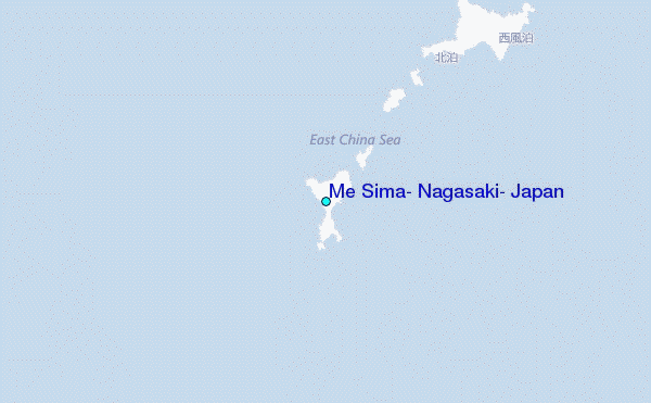 Use this relief map to navigate to tide stations, surf breaks and cities that are in the area of Me Sima, Nagasaki, Japan.