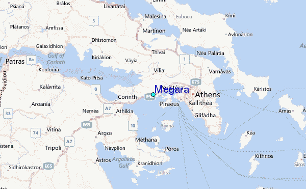 Use this relief map to navigate to tide stations, surf breaks and cities that are in the area of Megara.