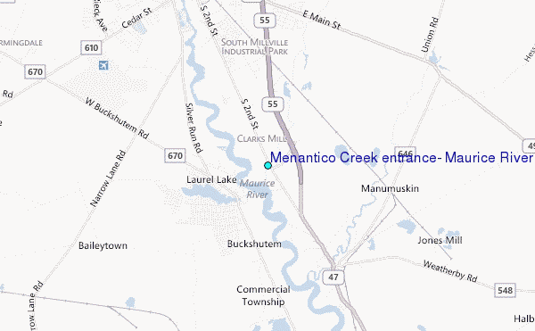 Choose Menantico Creek entrance, Maurice River, New Jersey Location Map Zoom:
