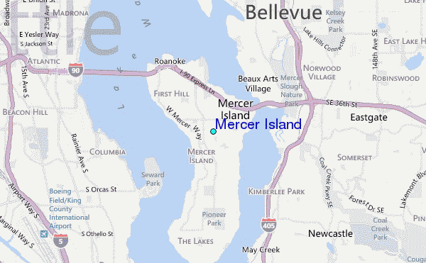 Use this relief map to navigate to tide stations, surf breaks and cities that are in the area of Mercer Island.