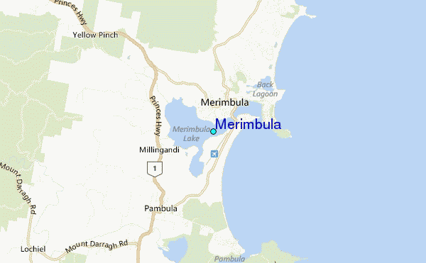 Use this relief map to navigate to tide stations, surf breaks and cities that are in the area of Merimbula.
