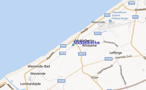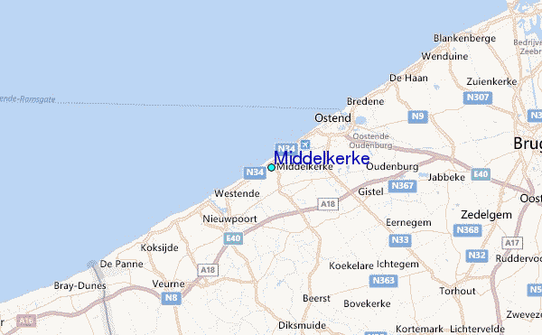 Use this relief map to navigate to tide stations, surf breaks and cities that are in the area of Middelkerke.