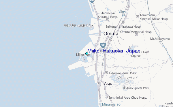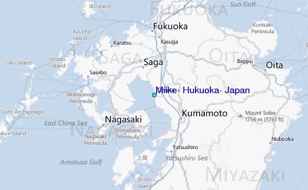 Use this relief map to navigate to tide stations, surf breaks and cities that are in the area of Miike, Hukuoka, Japan.
