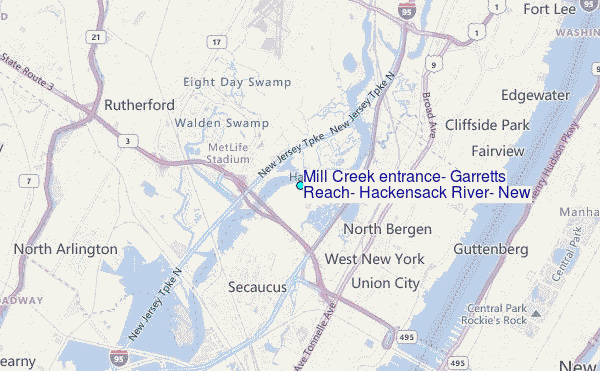Choose Mill Creek entrance, Garretts Reach, Hackensack River, New Jersey Location Map Zoom: