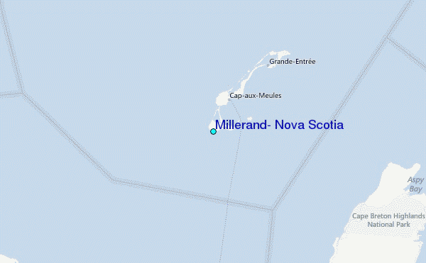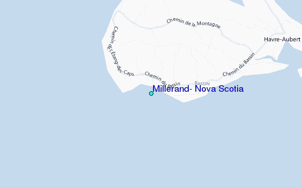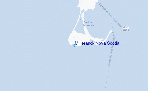 Use this relief map to navigate to tide stations, surf breaks and cities that are in the area of Millerand, Nova Scotia.