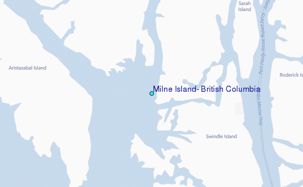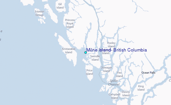 Use this relief map to navigate to tide stations, surf breaks and cities that are in the area of Milne Island, British Columbia.