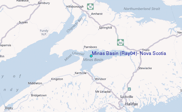 Use this relief map to navigate to tide stations, surf breaks and cities that are in the area of Minas Basin (Ray0.4), Nova Scotia.