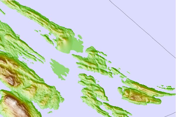 Use this relief map to navigate to tide stations, surf breaks and cities that are in the area of Miners Bay, British Columbia.