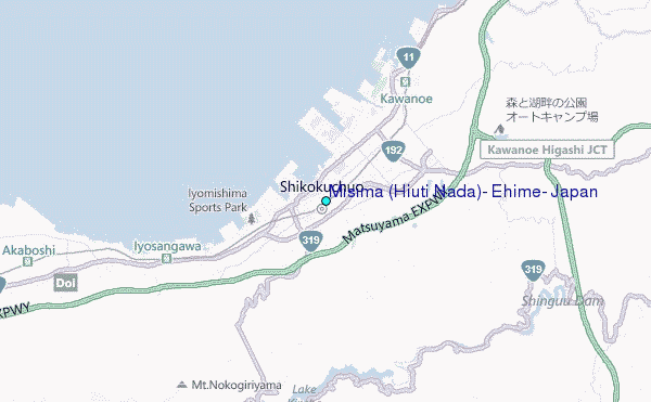 Use this relief map to navigate to tide stations, surf breaks and cities that are in the area of Misima (Hiuti Nada), Ehime, Japan.