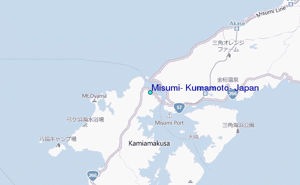 Use this relief map to navigate to tide stations, surf breaks and cities that are in the area of Misumi, Kumamoto, Japan.