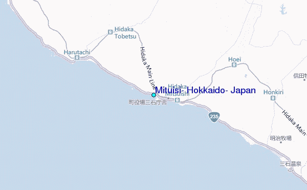 Use this relief map to navigate to tide stations, surf breaks and cities that are in the area of Mituisi, Hokkaido, Japan.