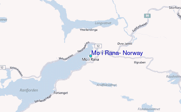 Use this relief map to navigate to tide stations, surf breaks and cities that are in the area of Mo i Rana, Norway.