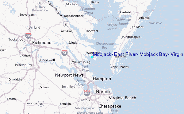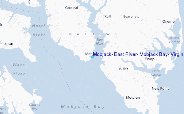 Use this relief map to navigate to tide stations, surf breaks and cities that are in the area of Mobjack, East River, Mobjack Bay, Virginia.