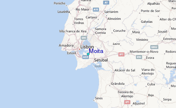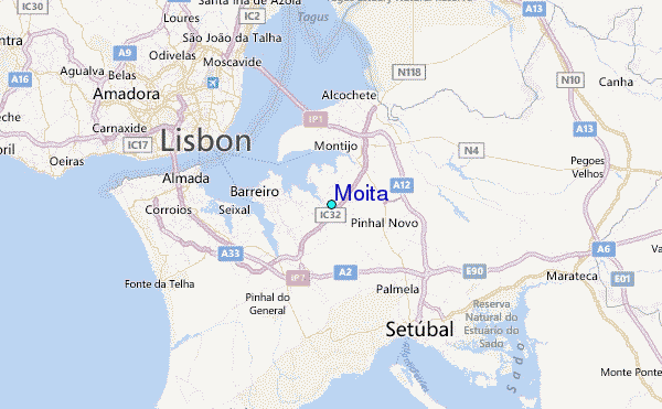 Use this relief map to navigate to tide stations, surf breaks and cities that are in the area of Moita.