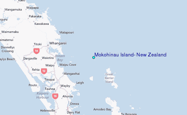 Use this relief map to navigate to tide stations, surf breaks and cities that are in the area of Mokohinau Island, New Zealand.