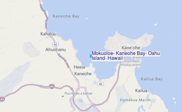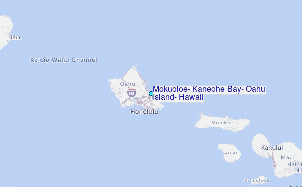 Use this relief map to navigate to tide stations, surf breaks and cities that are in the area of Mokuoloe, Kaneohe Bay, Oahu Island, Hawaii.