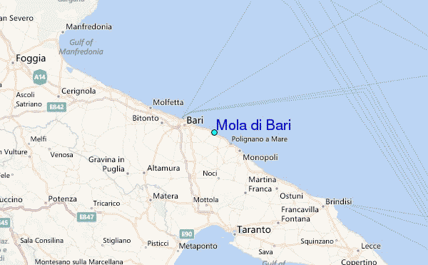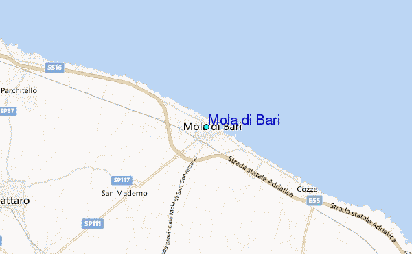 Use this relief map to navigate to tide stations, surf breaks and cities that are in the area of Mola di Bari.