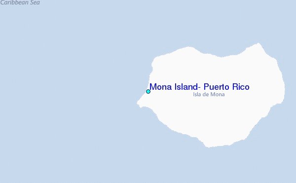 Use this relief map to navigate to tide stations, surf breaks and cities that are in the area of Mona Island, Puerto Rico.