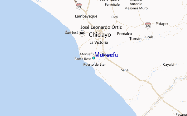 Use this relief map to navigate to tide stations, surf breaks and cities that are in the area of Monsefu.