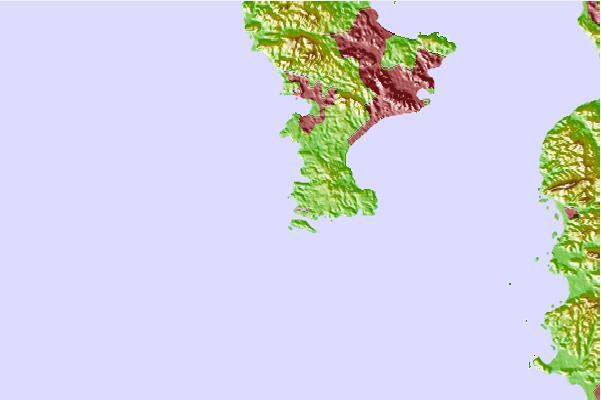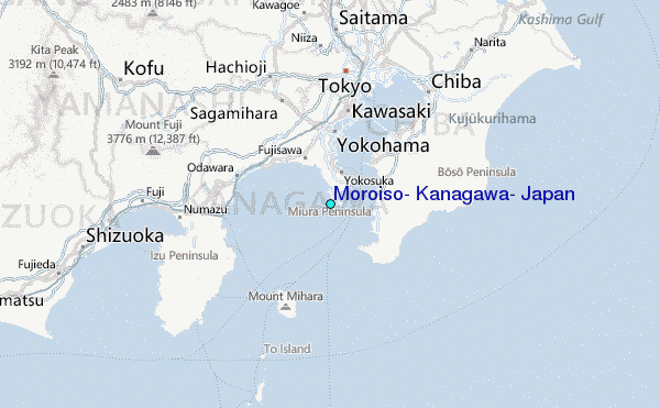 Use this relief map to navigate to tide stations, surf breaks and cities that are in the area of Moroiso, Kanagawa, Japan.