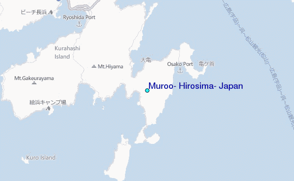 Use this relief map to navigate to tide stations, surf breaks and cities that are in the area of Muroo, Hirosima, Japan.