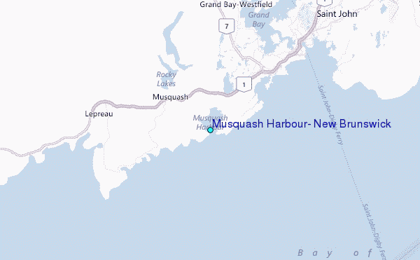 Use this relief map to navigate to tide stations, surf breaks and cities that are in the area of Musquash Harbour, New Brunswick.