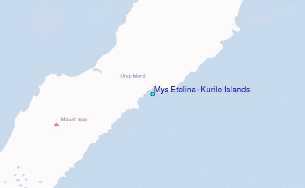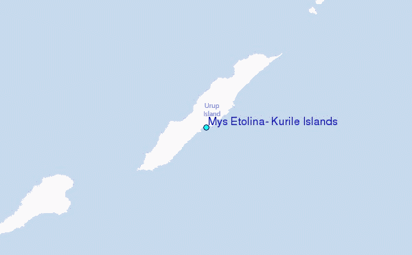 Use this relief map to navigate to tide stations, surf breaks and cities that are in the area of Mys Etolina, Kurile Islands.