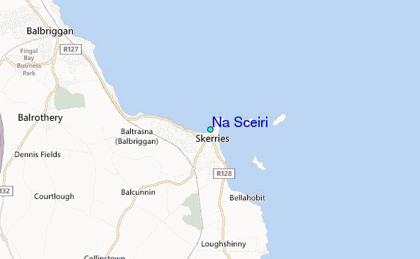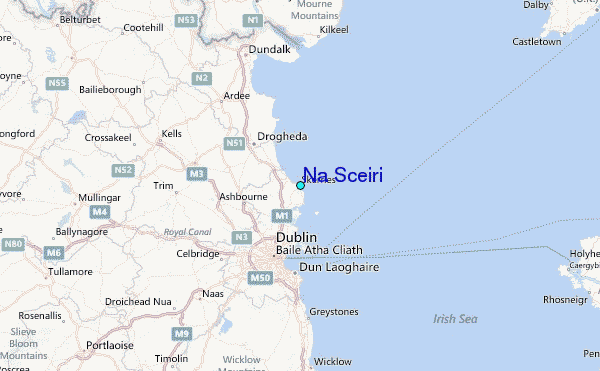 Use this relief map to navigate to tide stations, surf breaks and cities that are in the area of Na Sceiri.