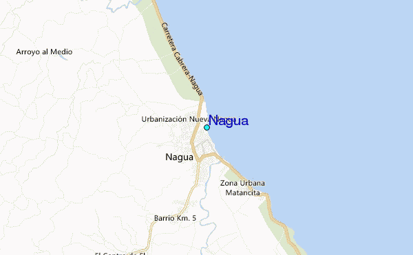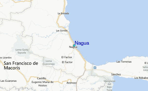 Use this relief map to navigate to tide stations, surf breaks and cities that are in the area of Nagua.