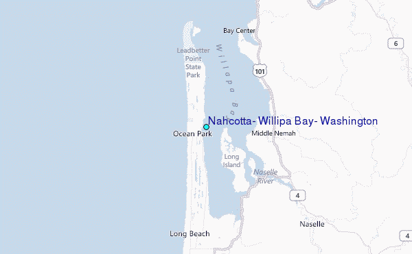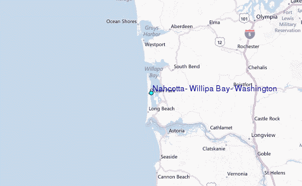 Use this relief map to navigate to tide stations, surf breaks and cities that are in the area of Nahcotta, Willipa Bay, Washington.