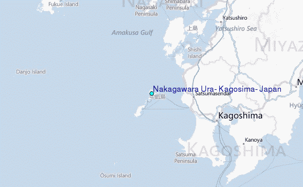 Use this relief map to navigate to tide stations, surf breaks and cities that are in the area of Nakagawara Ura, Kagosima, Japan.
