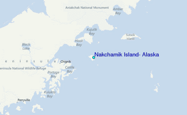 Use this relief map to navigate to tide stations, surf breaks and cities that are in the area of Nakchamik Island, Alaska.