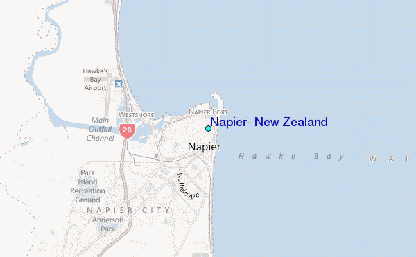 Use this relief map to navigate to tide stations, surf breaks and cities that are in the area of Napier, New Zealand.