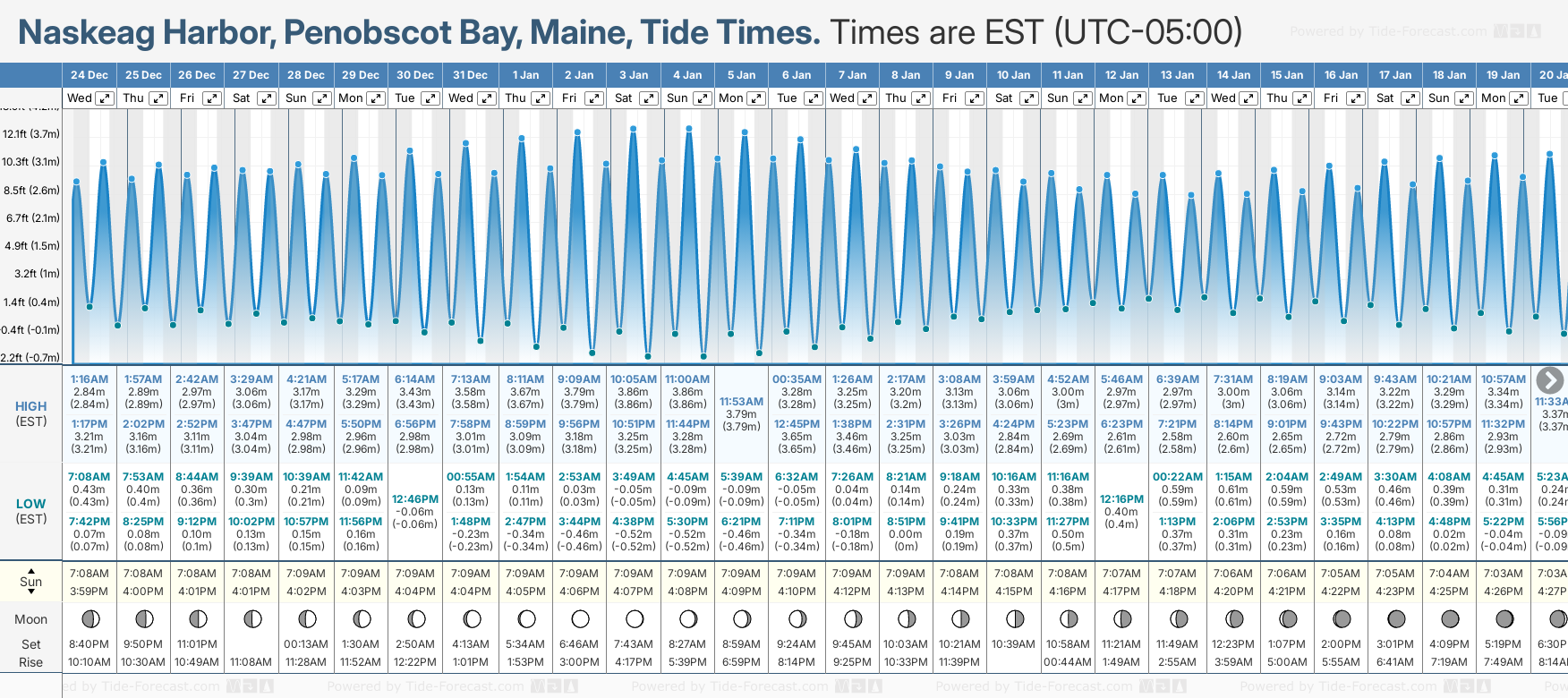 Tide Times for Naskeag Harbor, Penobscot Bay (tomorrow): Wednesday 24 December 2025